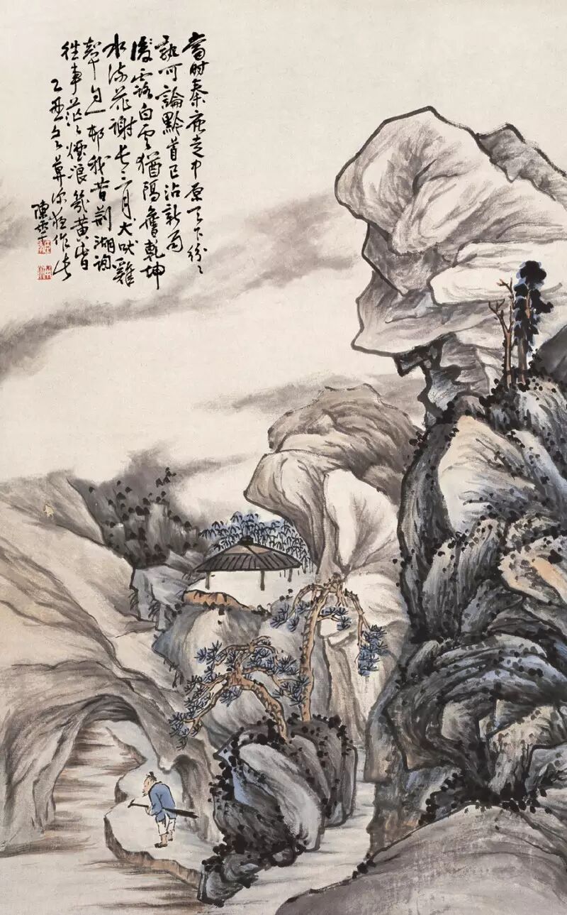 年轻的张大千受到如此冷落、也是老大不高兴。但为了鉴赏石涛的稀世珍品,他不得不忍心吞声地挨了三个多小时。到了6点多,贵客齐集后,陈半丁先在宴席上讲了一通开场白、自称幸获名迹、不敢私秘自珍,愿为友好共赏。张大千被挤在这批名流的外圈,等陈半丁捧出宝贝画册、刚刚展示,张大千就不由自主地大声叫起来:“是这个册子啊!不用看了,我晓得!”陈半丁被这个年轻人的狂妄急躁弄得很生气,于是他学着张大千的四川口音说:“你晓得,你晓得啥子嘛?”陈半丁想,我画册还未全打开,你怎么晓得?