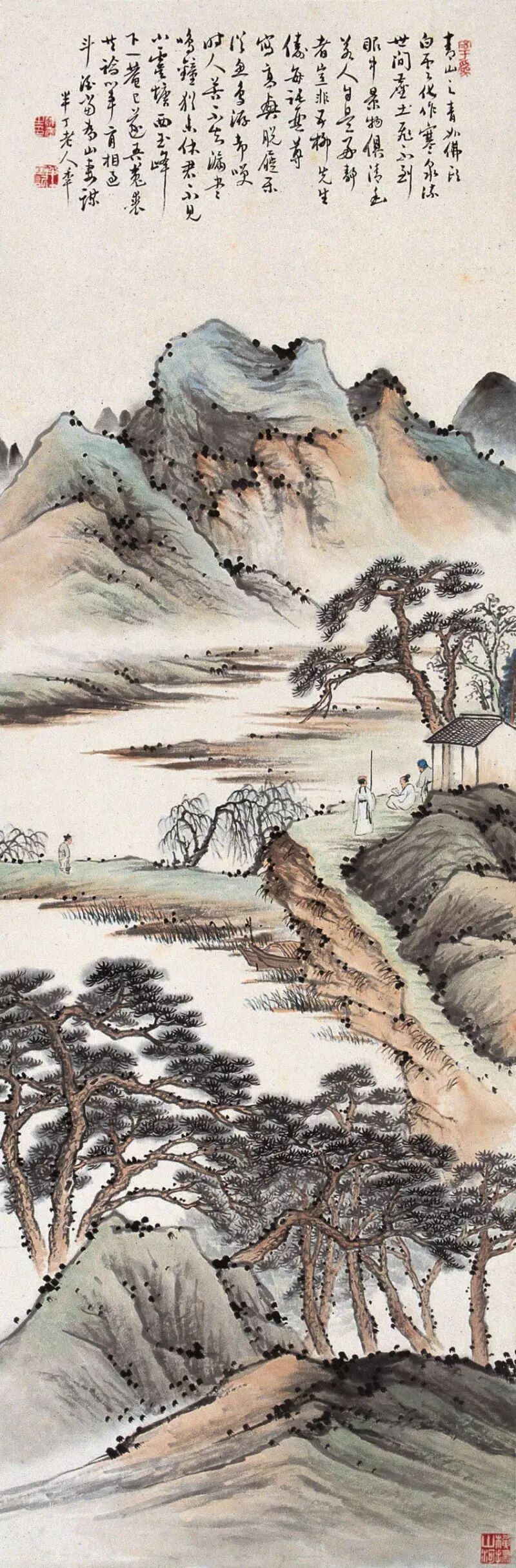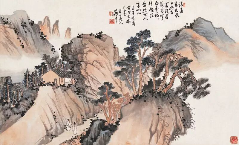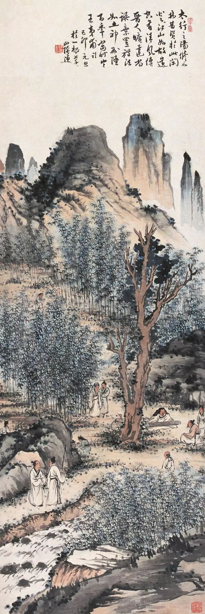 30年代的一天,北平城里的10余名画家举行雅集。在宴会上、年龄最大、名望最高的大画家陈半丁老人兴奋地宣布:他新近搜获到清初著名画家石涛和尚的一部画册精品、精美非凡、 世所罕见,为此他特地邀请北平艺苑名流第二天晚6点到他家中鉴赏。受到邀请的有中国画学会会长周养阉以及著名画家黄君壁、马晋、王雪涛、于非闇、徐燕孙等。陈半丁邀请了这么多画苑名流、却少邀了一个人、此人就是当时正客居北平、初登画坛、尚无名气的年轻画家张大千。但张大千是个有名的“石涛迷”。他少年习画,就下工夫临摹石涛、八大山人,徐渭、和吴昌硕的画,研习多年、画得几可乱真、有“南方石涛”之称。这次,他风闻艺林有此雅集、鉴赏石涛精品,此等机会他岂能放过?因而不等陈半丁相邀,第二天下午3点张大千就直趋陈府求见,毫不客气地当面请陈半丁出示藏画观摩。而陈半丁的脾气是客人没有一齐到,就不出示藏画的,他对张大千这位虎头虎脑的后生小子摆架子说:“我约朋友来共赏、请贴的时间是6点。我不能先给你看、要等朋友到齐了大家一起欣赏。你想见识、可以,但不是现在,要等到6点。”说完,离座而去,留下张大千一人在客厅里坐冷板凳。