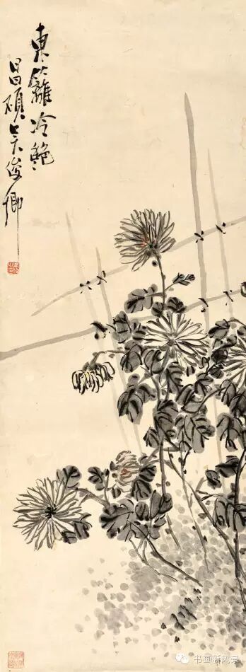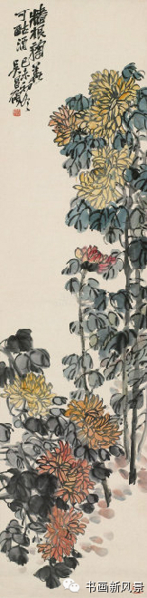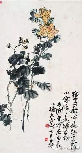 吴昌硕特别偏爱画菊,他的故乡芜园、他所居住的厅堂外的篱边,都种满了菊花。
