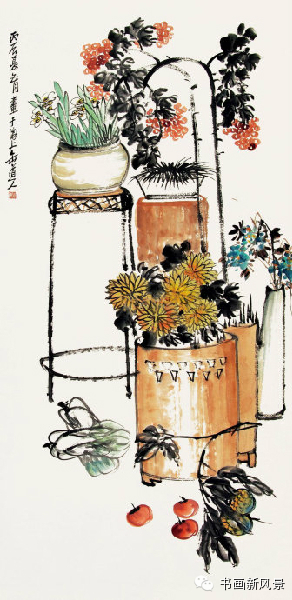 吴昌硕创造性地将书法、篆刻的行笔、运刀及章法、体势融入绘画,形成了独步画坛的“金石画风”。