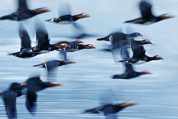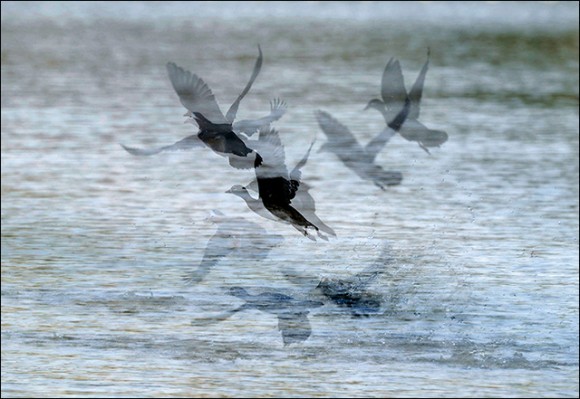 在这样的作品中,慢门记录下鸟类快速运动的痕迹,加上多重曝光产生的重叠影像,能让人产生梦幻的感觉,给人以新鲜感、韵律感,给具象事物赋予一种抽象动感。