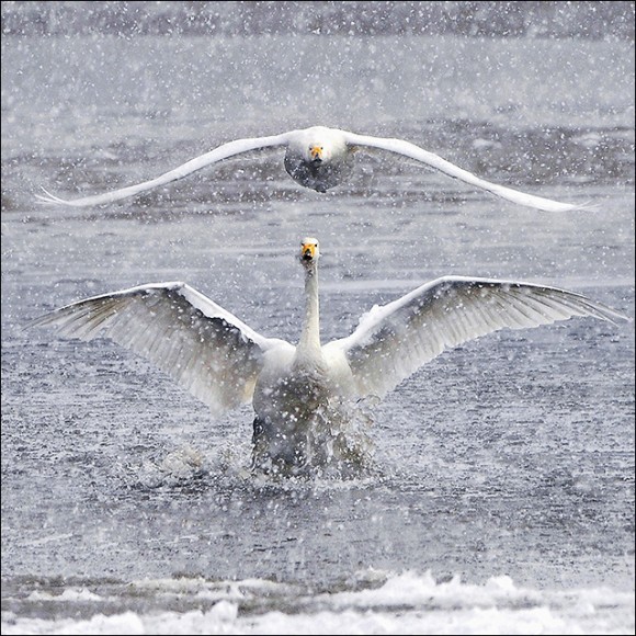 雪中情侣,尼康D3机身,500mm,ISO 400,f/7.1,1/1250秒,EV-0.33,曝光次数:1次