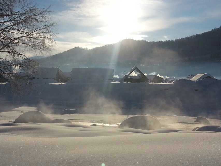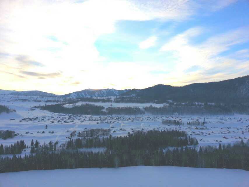 像风一样自由 说:禾木清晨,零下34℃,观景台上~