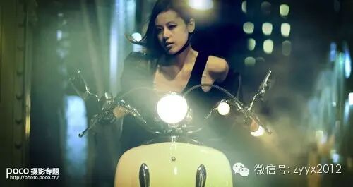 这组片子里除了桥上零星的几盏路灯,起点缀作用外,最主要是利用了电瓶车的车头灯、转向灯以及桥端处的红绿灯。车灯因为离相机近,光相对来说比较强,经保鲜袋的衍射后能形成如手电筒般的衍射效果;而红绿灯的穿透力强,虽然距离较远,但也能形成比较好的光影衍射效果,并且能丰富画面色彩。