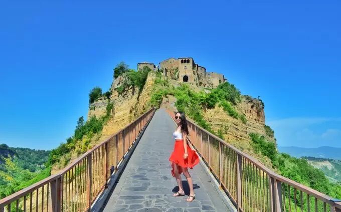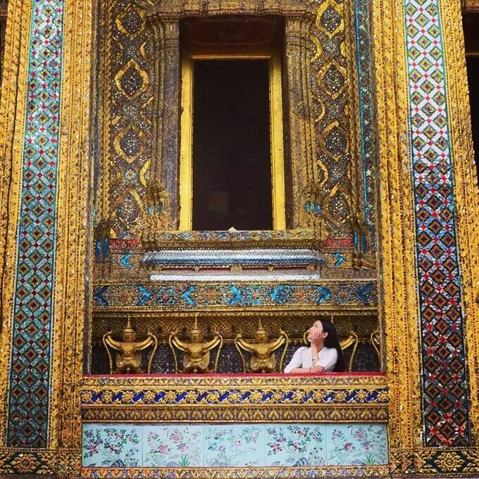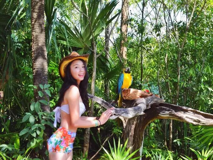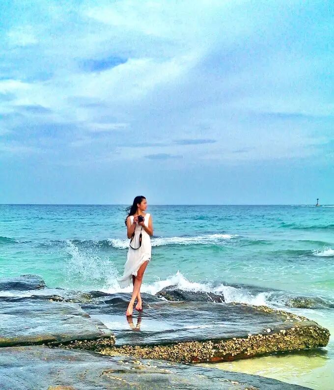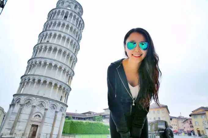 拍正面最需要注重的是表情。常常看到大家拍出来的正面图片会略显浮肿,或者表情尴尬。女孩们可以自己在家里对着镜子练练看哪种表情最适合自己,因为毕竟在旅游时没有那么多时间去来来回回地重拍改表情。正面要想不显脸胖,可以微收下巴,或者微微侧一点脸,让鼻子的轮廓显现出来。比如: