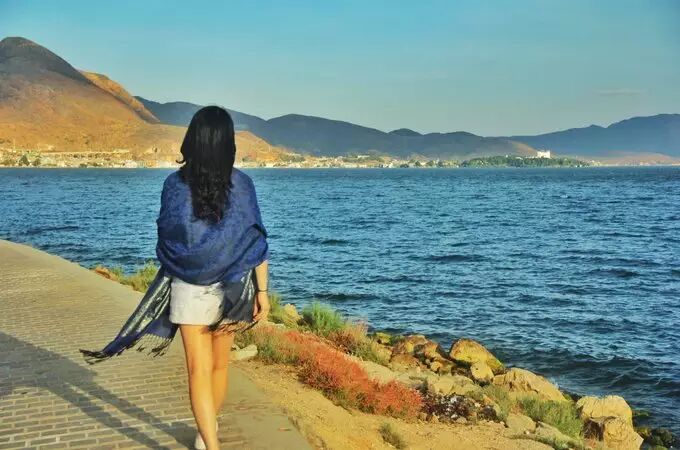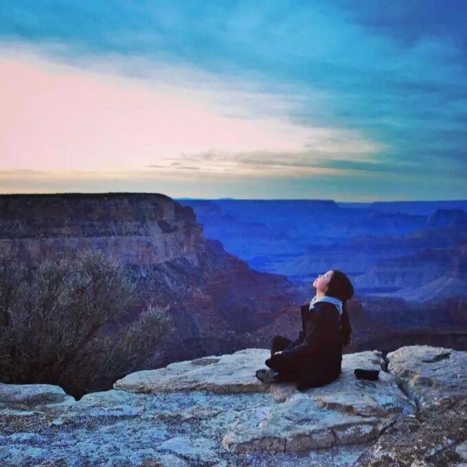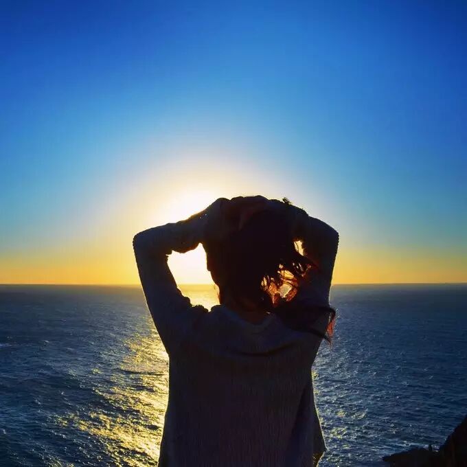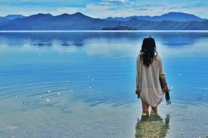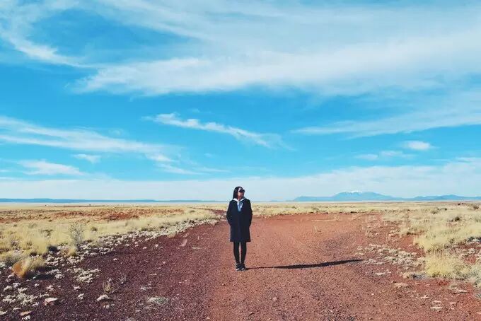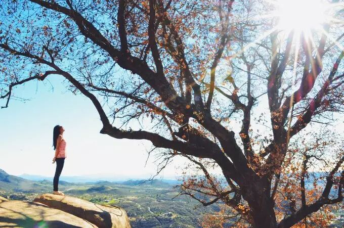 除了比例,还有一个朝向问题需要注意。背对景物会让人看着不舒服,而面对景物就显得图片更有故事性和感染力。人物的朝向问题,决定了人和景的融合程度,换句话说就是,你需要和景色沟通。所以,景色占的比例要大,人物要面向景色。