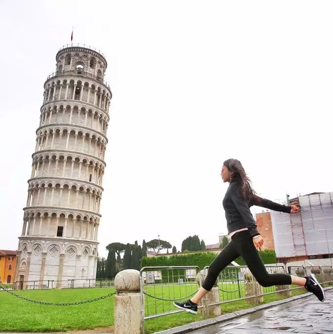 比萨斜塔前的广场上总是聚集着来自世界各地想要把斜塔推正的游客,为了避开这些游客,你可以找个稍微远些的地方,从下往上拍。就算广场上挤满了人,天上总不至于飘着人吧。