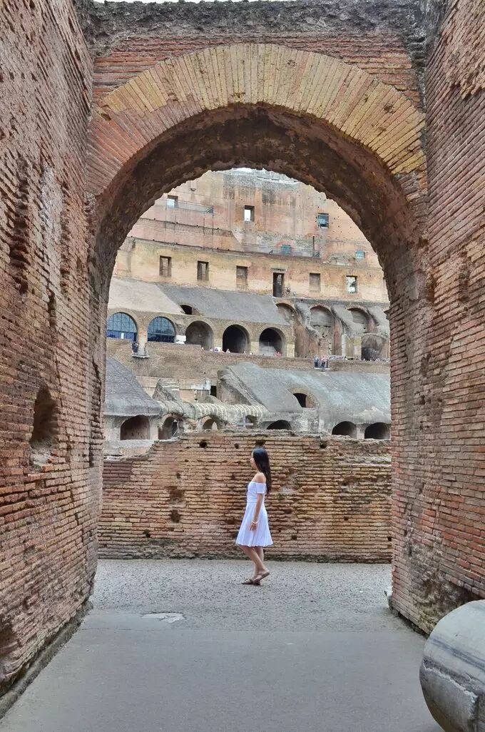 下面这张也是斗兽场。在斗兽场二楼有很多个类似这样的拱门连接斗兽场的内圈和外圈,游客一般都聚集在内圈和外圈上拍照,所以拱门就空了下来。