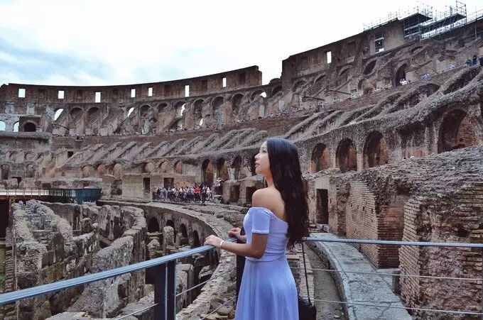 秘诀就是,聪明的找角落。下面这张是正午时的罗马斗兽场,看到后面一大群的旅游团了吗?我站的位置是斗兽场内某一处围栏的最角落,我的身后没有地方可以站人了。
