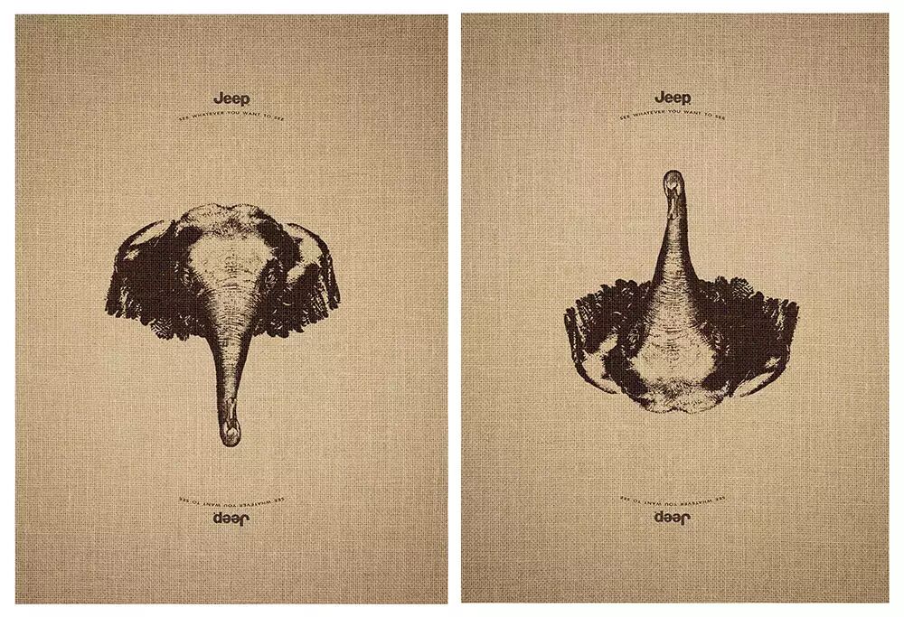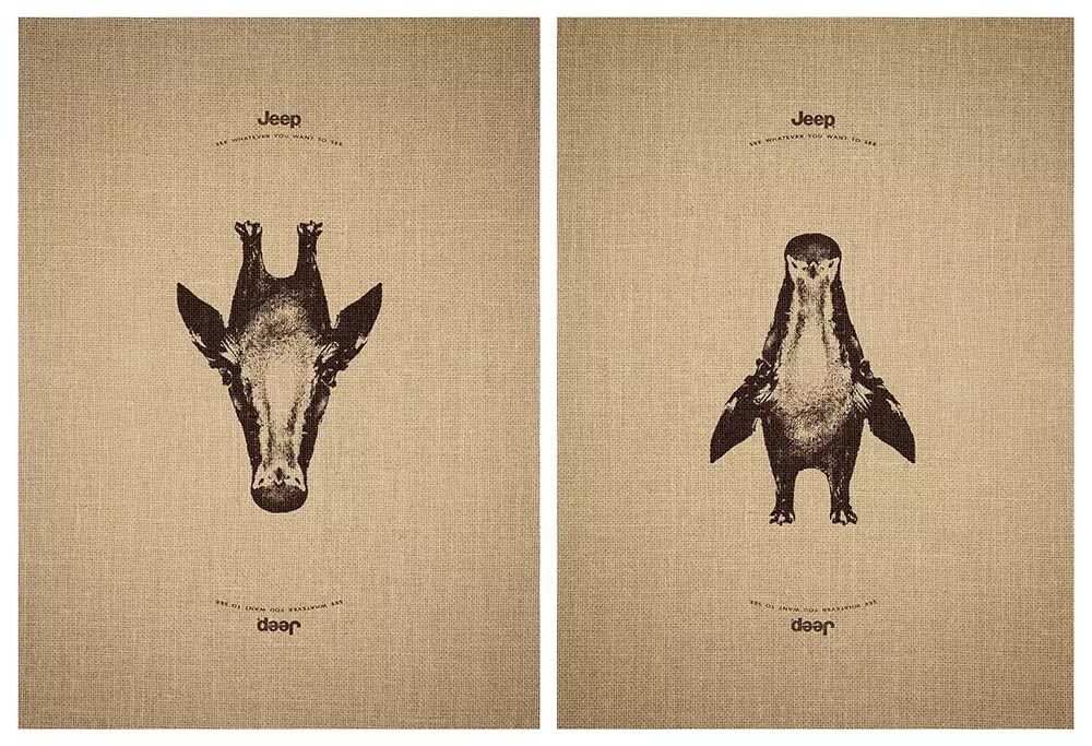 我们的眼中常常只能看到我们想要看到的事情。比如下面这几张广告图,在不同的方向,你看到的就是不同的动物。