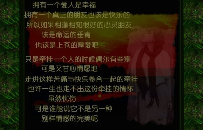 轻声问候,温馨话语,恰似甘甜美酒; 网络结缘,屏牵你我,隔屏相互祝福; 你思我盼,两心相悦,千山万水无阻; 恒久缠绵,情深意重,恩爱荡涤朝暮;