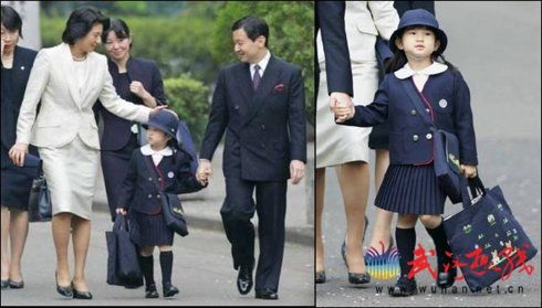 日本皇太子妃小和田雅子与皇太子德仁陪同小公主爱子参加幼儿园入园仪式。