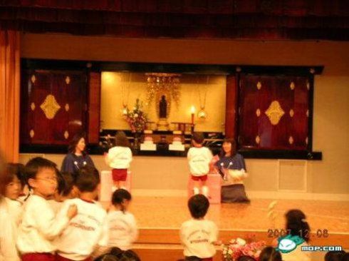 幼儿园每个月都要到寺庙里受一次教诲,园里最重要的节日一定要拜佛,佛诞日、涅磐日都有活动。日本人相信,从小对孩子进行佛教思想的浸透,会使孩子拥有一颗懂得感恩的心。