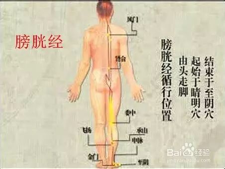 膀胱经从头顶的百会穴开始,延至后背、臀部,于脚跟止。一般中医认为,膀胱经真正的效力位置从腰间开始,因此你只要敲打下半身就够了。