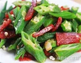 1.咸肉片炒秋葵