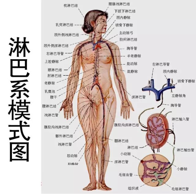 淋巴系统是由一些液体、器官、结节和小结、管道、腺体以及脉管组成,淋巴管中流动着淋巴液,淋巴液能够回收及运输体外入侵物和细胞产生的毒素。淋巴系统管的中断点叫“淋巴结”,大大小小数以百万计的淋巴结守卫着体内通道,阻挡有害物质的入侵。如果把人体内的淋巴管拉直并接在一起,长度要超过16万公里,可以绕地球4圈。除了软骨、指甲和头发,我们的整个身体都浸在淋巴液中。它像一张大网,囊括了体内的一切。淋巴循环使毒素有充分的机会与人体强大的排毒细胞的表面接触,如巨噬细胞和淋巴球等。超过99%的可溶解毒素及新陈代谢后的废物能够被淋巴系统清除。所以,我们说:如果毒的积累是致病的根源,那毒的排除建设就是健康的起点。因此很多“毒素”逃不过淋巴系统这一关。.....
