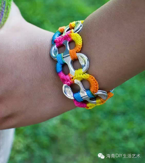 用布条将拉环串起,就能简单制成风格独特的手链了。