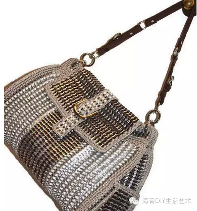 完全用易拉罐拉环制成的包带有冰冷的金属感,现代气息浓厚。