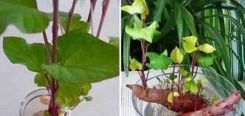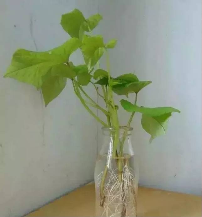 注:如果您会一点造型设计,便可以来个地瓜盆景,剪下的叶子可以炒菜吃。