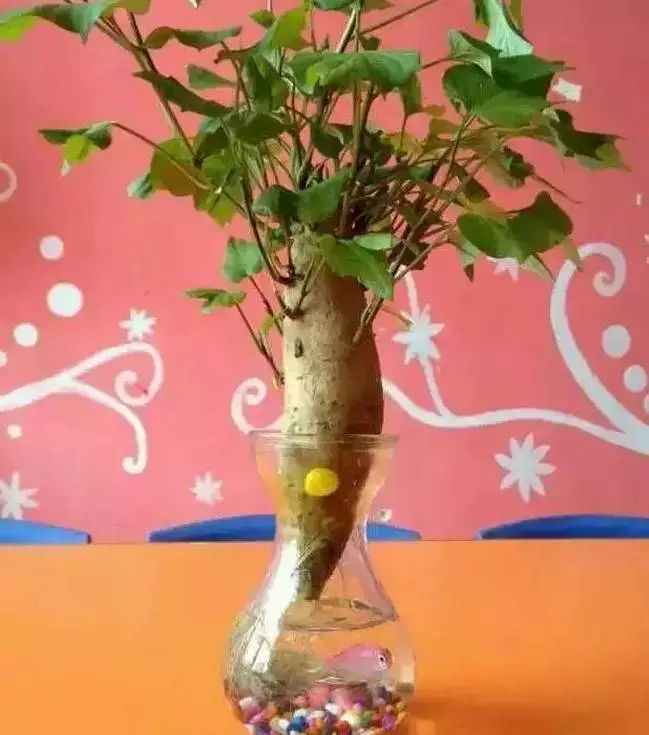 对于客厅种出这样的地瓜盆景还真是开眼,况且它们是养在水里的。