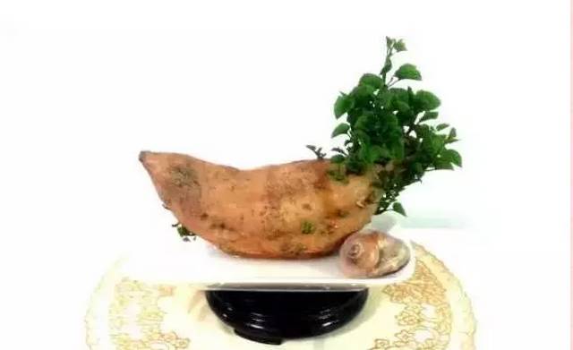 注:如果您竖放地瓜,可不是随意将地瓜放置水里的,你要仔细观察,地瓜身上有很多小根须,根须朝向哪头,哪头就要放在水里。水漫不过腰身,找一透明玻璃杯或花瓶进行装置,静静的等待着它的生长。如果横放地瓜,那就找个漂亮的花盘吧。