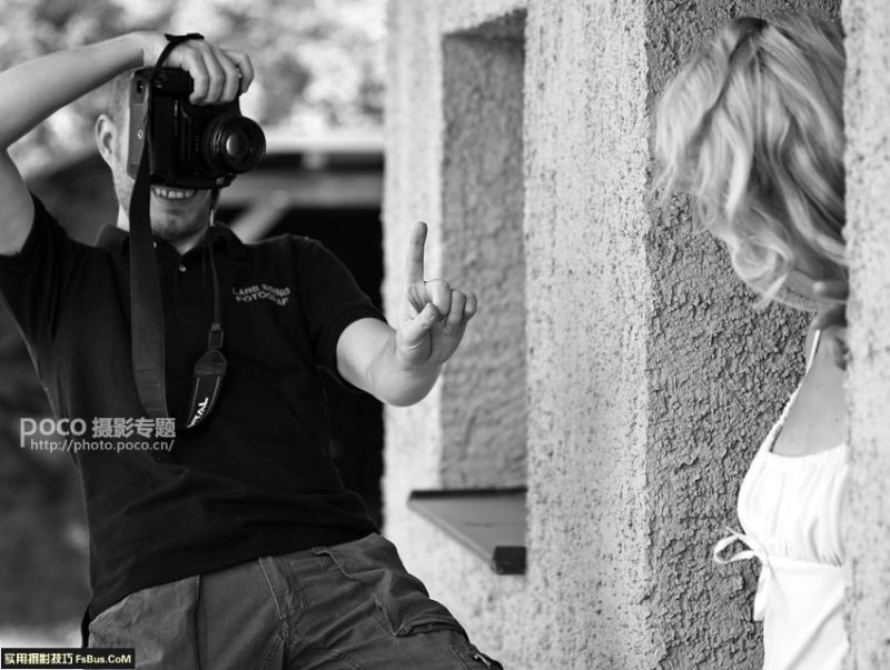 从图中我们可以看到,用取景器取景时摄影师和模特是如何共同工作的―摄影师用相应的手势引导模特:“跟着我的手指走”。