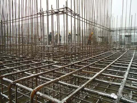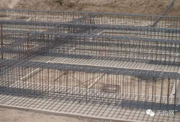 5、底板纵筋接头长度有的太长,超过一个搭接长度,有的则太短,不能满足规范所要求的长度。底板通长筋没绑扎成平行直线,导致同截面钢筋根数不同。