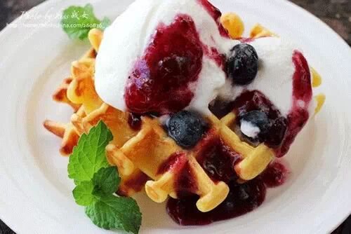 蓝莓果酱华夫饼