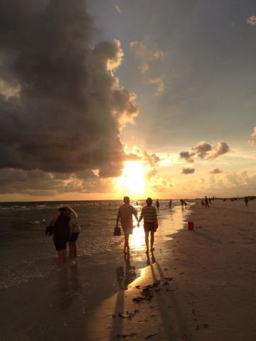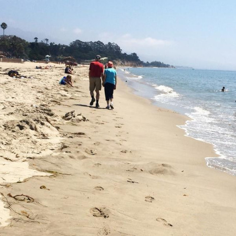 2、两个人牵手走在沙滩上,相互问候着,说着祝福的话,直到到永远!