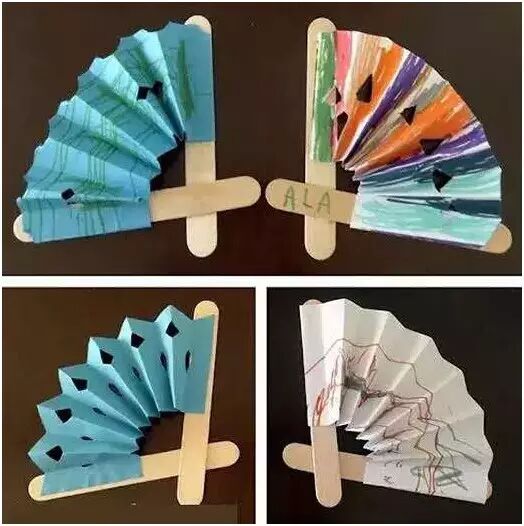 几根冰棒棍、一张纸再用上一枚图钉(或胶水),你看漂亮的扇子是不是就做出来了?