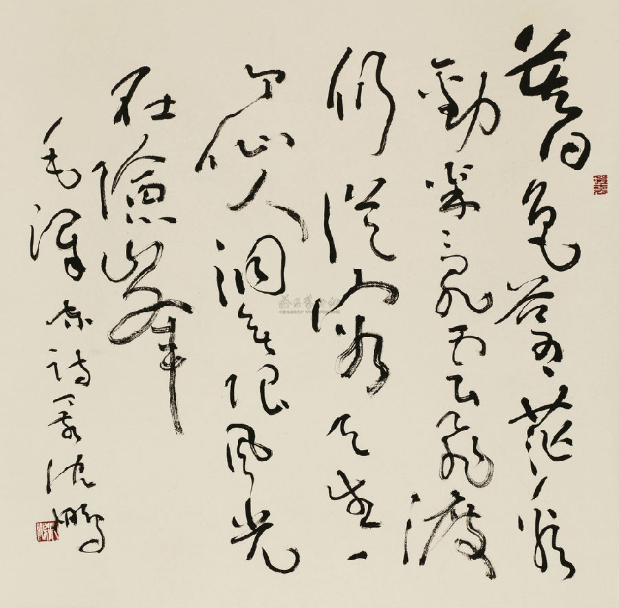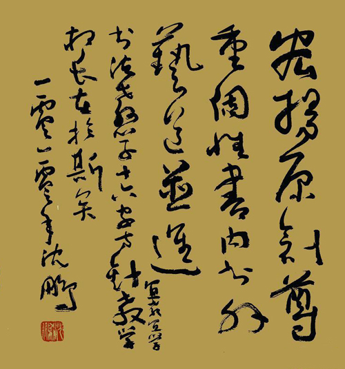 关于悟帖,其实还有很多书法之理,比如大家熟知的“公孙大娘舞剑”、“担夫争道”“惊蛇入草”、“锥画沙”、“屋漏痕”等等,都是古人总结出来的东西,需要我们研究,并从中得到启发。我本人曾经也从数学中的勾股定理、一堆扭乱的钢筋,以至现代美术设计、舞蹈动作等现象中得到不少启发。比如勾股定理,也就是关于三角形的定理,我在字形的把握上发现,三角形远比四方形活泼得多,大家可以仔细看看我的字,无论字多字少,字形多是由各种不同形状的三角形构成的,极少有四平八稳的四方形,这也算是我本人的一个发现,或者说悟得其理。还有一堆扭乱的钢筋,那是二十多年前在一个建筑工地上发现的,尽管扭乱生锈,但它毕竟是钢筋,那种可曲可扭而不折的弹性力度使我大受启发:书法的线条,尤其是草书的线条,不就像这堆扭乱的钢筋么?如果大家认真去观察、研究一下张芝、二王、怀素、张旭、黄庭坚、王铎、傅山、王蘧常等大家的草书线条,无不体现着一种像扭乱的钢筋般的弹性力度;而这个弹性力度恰恰是书法“笔力”的要求。什么是笔力?就是那种看似圆韧而骨力四溢的线条美感。