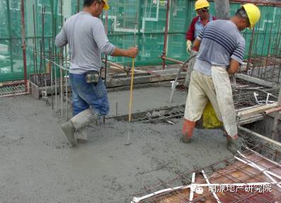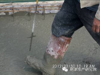 6.浇筑混凝土过程中,专人使用插钎跟进检查楼板厚度是否符合要求,确保板厚尺寸控制在(-5MM—+8MM)的范围内,这提高了板面找平的施工效率。