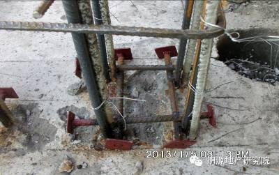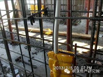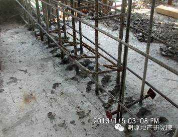 3.墙柱定位采用钢筋撑烧焊固定,避免模板跑模和墙柱移位,以确保墙柱截面尺寸符合设计要求。