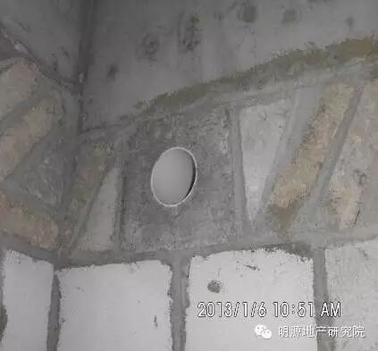 13.空调管预制块要求正确放置,空调管的预留孔必须内高外低,周围灰缝饱满;杜绝渗水隐患。