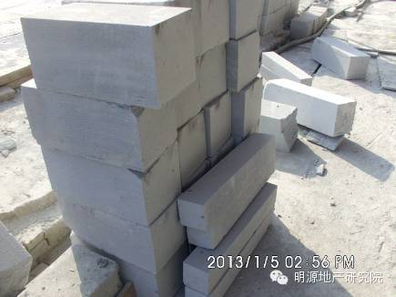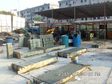 3.根据万科四化生产要求,按照每面墙的排砖图尺寸要求,对统一需要切割的加气块采取集中加工;这大大提高生产效率,加快施工进度;也减少施工垃圾,有利于现场文明施工管理。
