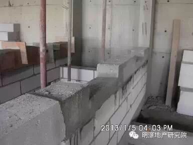 12.外墙窗顶部必须以预制块顶砌,且保证灰缝密实无瞎缝、通缝,杜绝外墙渗漏隐患。