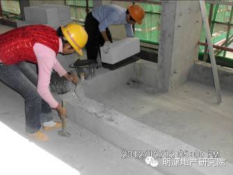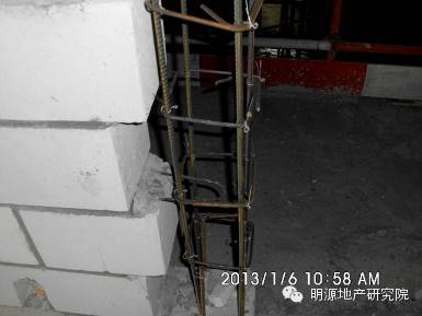5.严格按照建筑1米标高线墙体排版图要求定位出墙体拉结筋的位置钻孔植筋;以确保拉结筋刚好在墙体的水平灰缝处,保证了施工质量。