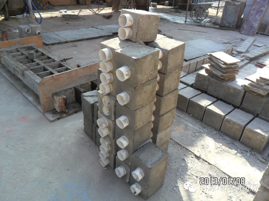 为防止空调管冷凝水倒流和杜绝外墙渗水,也集中加工了空调预留管的预制块。