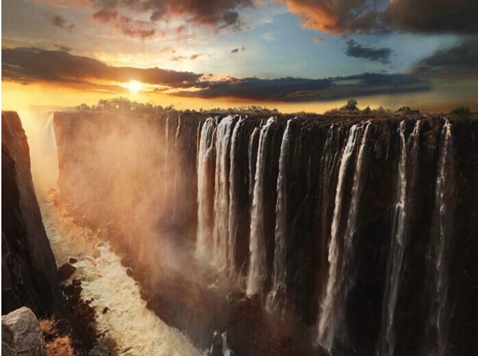 阳光下津巴布韦的维多利亚瀑布尽显雄浑壮美