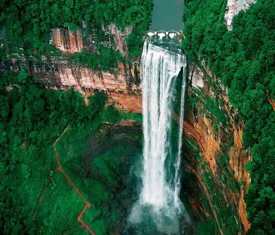 位于湖南德夯九龙溪源头,是中国最高的瀑布,也是最细腻的瀑布,大部分时候,瀑布从绝壁之上腾空而下,极高的落差,流水到了下面就散落成流沙状。