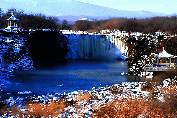 又称镜泊湖瀑布,它位于黑龙江宁安县西南,它形状好像加拿大尼亚加拉大瀑布,是世界最大的玄武岩瀑布。每逢雨季或汛期,水声如雷,激流呼啸飞泻,水石相击,白流滔滔,水雾蒸腾出缤纷的彩虹。