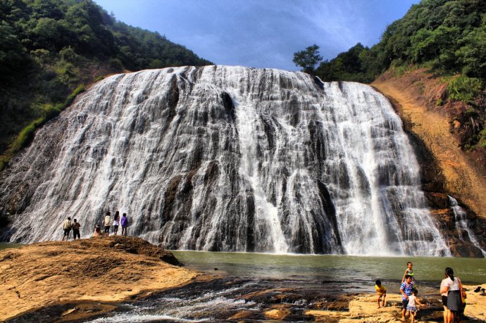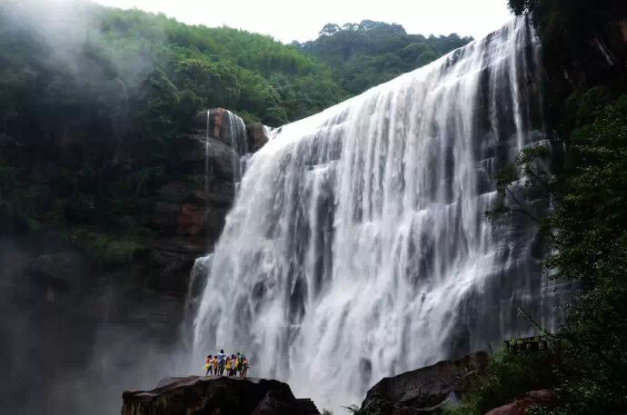 位于福建周宁县,华东仅有的特大瀑布群。瀑布总落差300多米,在长达1000米的流程中连续九级不同的落差穿过峡谷,形成奇绝的飞瀑深潭。