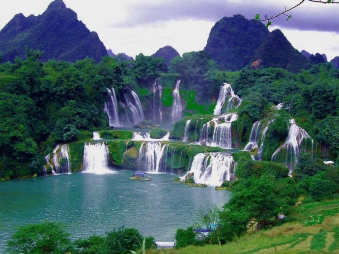 德天大瀑布位于中越边境、广西大新县,是世界第四大、亚洲第一大跨国瀑布。德天大瀑布的美在于变幻多姿,她就像模特在表演时装秀一样,早、午、晚各展现出一幅幅瑰丽生动的美景。