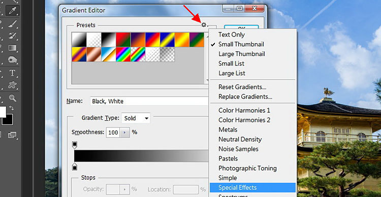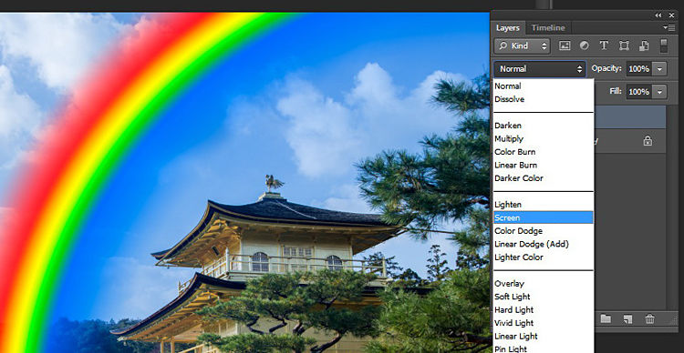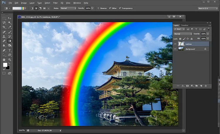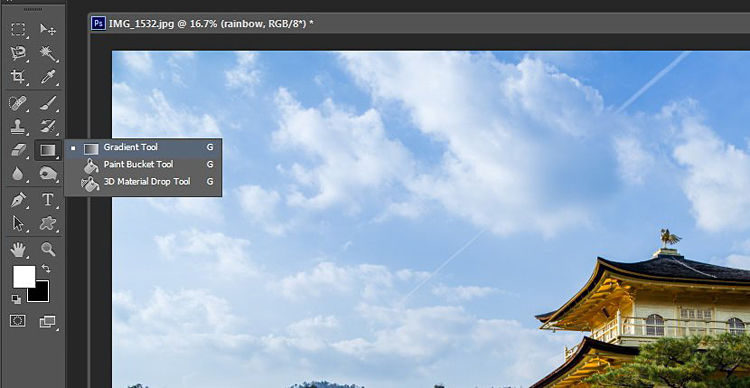 下面是给追求完美的朋友的:“彩虹”蓝色的部分和天空之间还是有一些不吻合的痕迹。所以我们再做一个黑白渐变来掩饰
