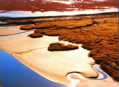 之所以少有人知是因为红海滩出现的时间太短了,只有在这个恰当的地方和恰当的时候才会出现退潮后鲜艳的碱蓬草和丹顶鹤配合的美丽画面。