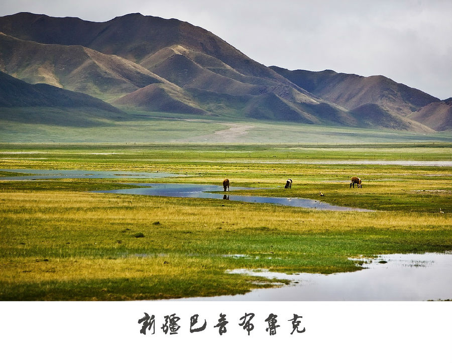 金色的草原,雪白的桦木,羊群马群从山坡走过,赶羊人遥远的皮鞭和微笑,背景是洁白的雪山。