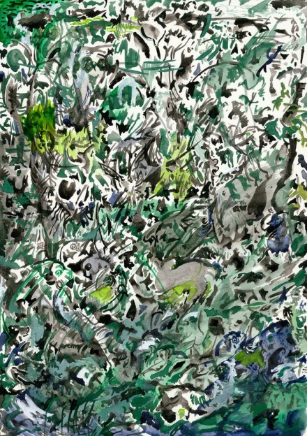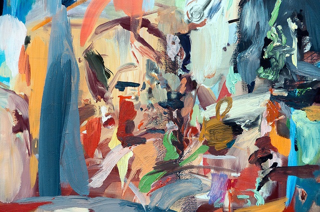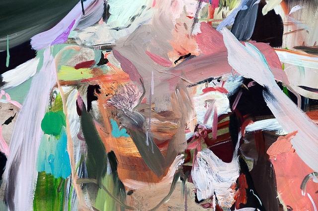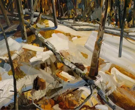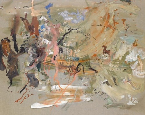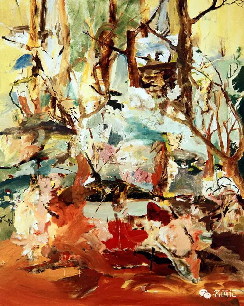 她在作品中小心的维持着抽象的形式技巧和具象内容之间的平衡,以求得凌乱中的秩序感。在强有力的动势笔触中,逐渐地将具象的结构以破碎的抽象形式展现出来,就像她自己认为的:画没有固定的主题思想,而是反映生生不息的变动。