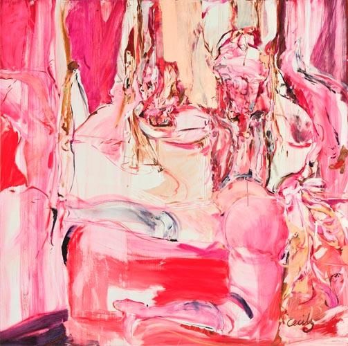 塞西莉布朗那充满张力和躁动的画面,具有浑厚坚实的体感,能引起人们情感体验的宽度和深度,尤其是与触觉、享受、激情等相关。性和肉是塞西莉布朗热衷表现的主题,她把颜料等同于肉体,并创造出一种坦然的情感画面,这种画面在狂放的笔法和刷痕的剧烈混合中,掩藏着浓重的肉欲,蕴含着女性的恣意。这样使得人物与背景相互融合在同一平面上,不分彼此。