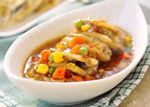 4.炸茄盒的油全部倒掉,煸炒杂菜后,倒入泰式甜辣酱,高汤,盐,煮沸。