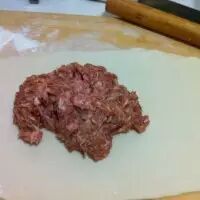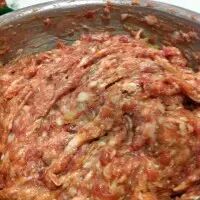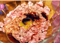 1. 牛肉馅搅拌开,放入白胡椒粉,蚝油,盐,鸡汁拌匀。